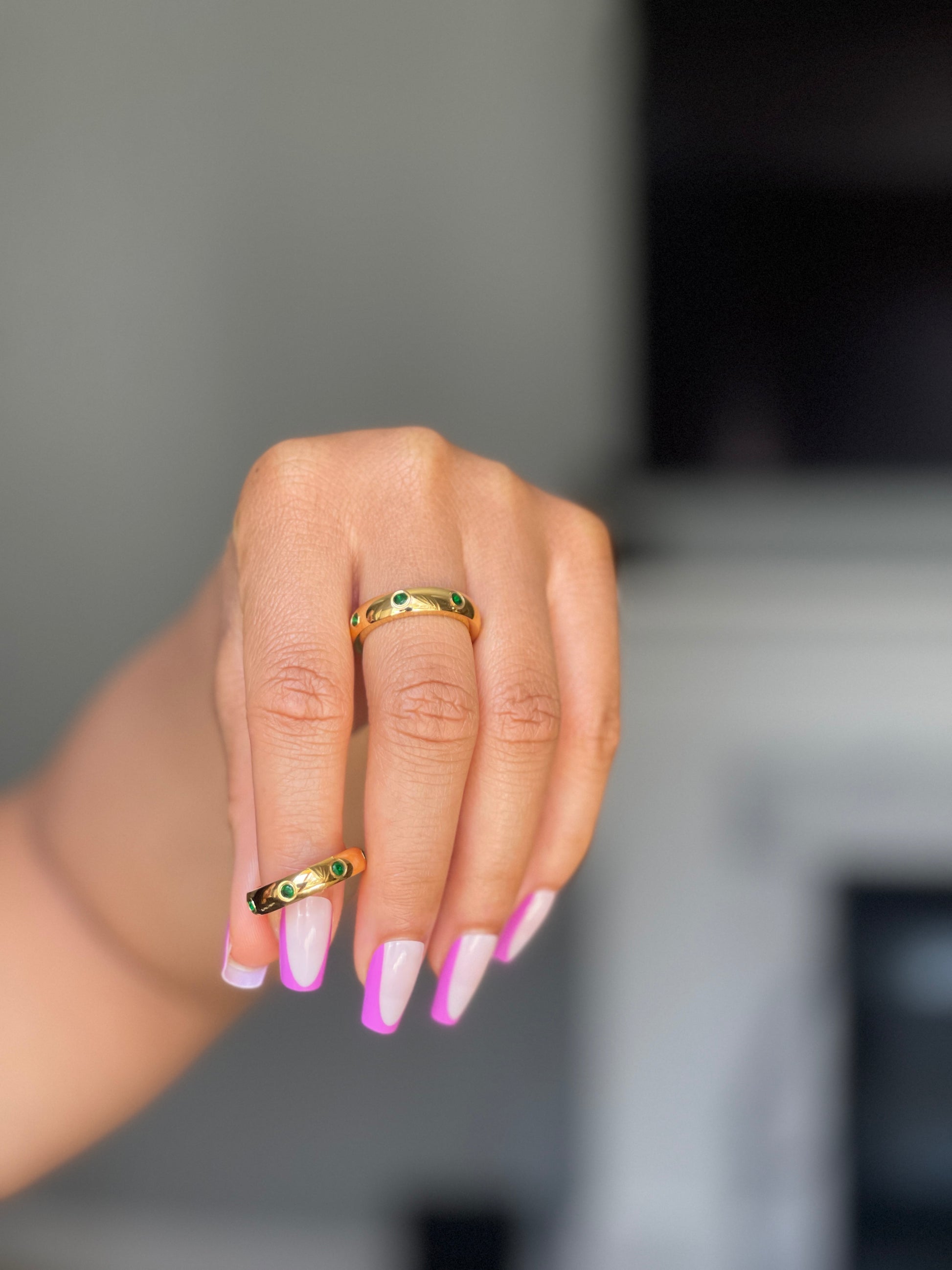 This ring features a stunning green zircon stone set on a durable stainless steel band. The vibrant color of the stone adds a touch of elegance to any outfit, while the stainless steel ensures long-lasting wear.