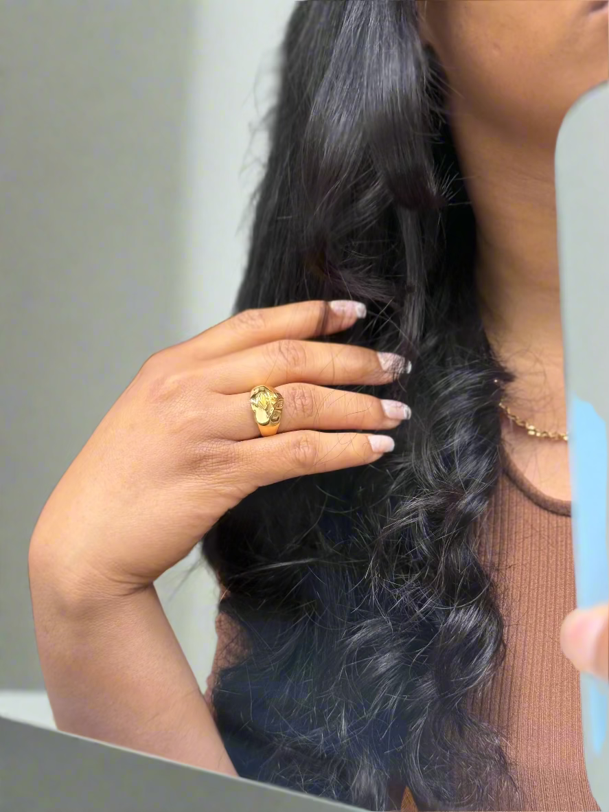 This half face ring is reminiscent of "Neg Mawon," a symbol of freedom in Haiti. Crafted from high-quality stainless steel, it serves as a powerful reminder of liberation and individuality.
